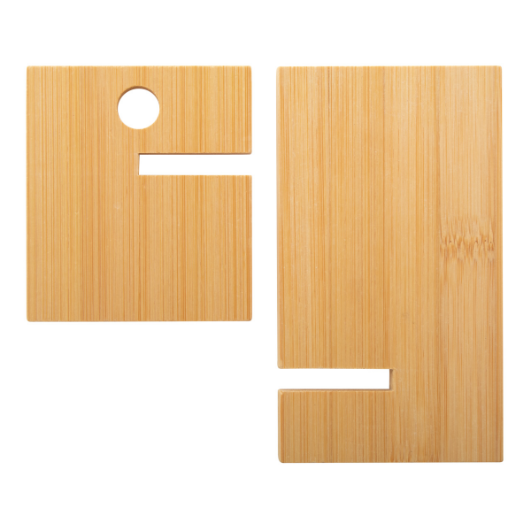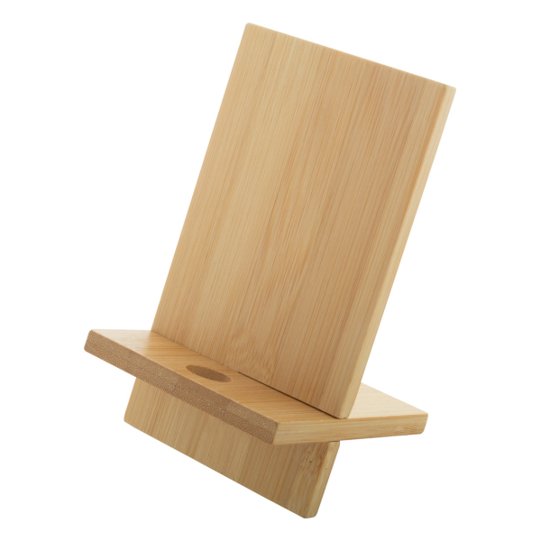 Bureauhouder voor mobiele telefoon van bamboe. Met kabelgeleidingsgat voor gemakkelijk opladen. Wordt plat verpakt geleverd.