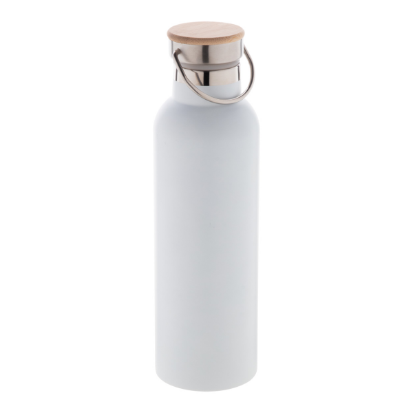 Dubbelwandige roestvrijstalen, vacuümgeïsoleerde fles met bamboe draagdeksel, 750 ml.