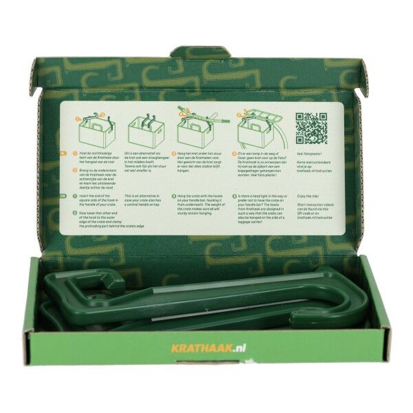 De Krathaak is dé ultieme fietsgadget waarmee eenvoudig een krat aan de bagagedrager of het stuur bevestigd kan worden. Dit 100% Nederlandse product maakt het mogelijk om veilig en moeiteloos een krat op de fiets te vervoeren. Klik klak klaar en fietsen maar!