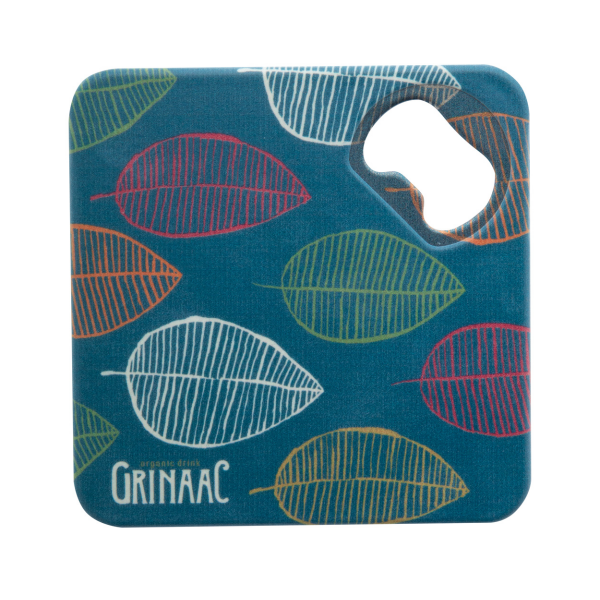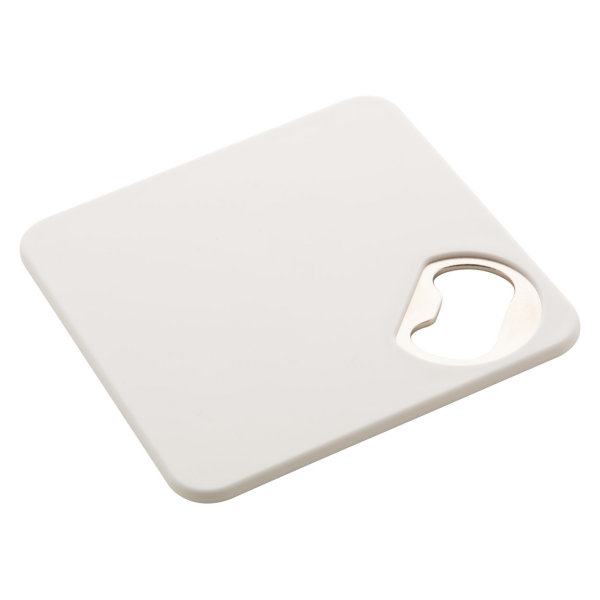 Plastic onderzetter met metalen flessenopener en anti-slip onderkant.