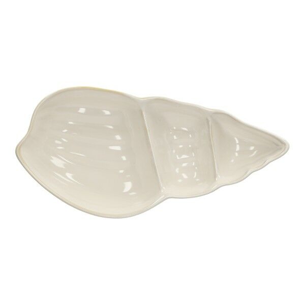 Til je presentatie naar een hoger niveau met deze stijlvolle serveerschaal in de vorm van een schelp. De schaal is verdeeld in drie vakken, perfect voor het serveren van hapjes, noten en dips. Of het nu gaat om een feestelijke gelegenheid of een gezellig diner, het unieke ontwerp maakt dit serveerbord een opvallende toevoeging aan elke tafel.