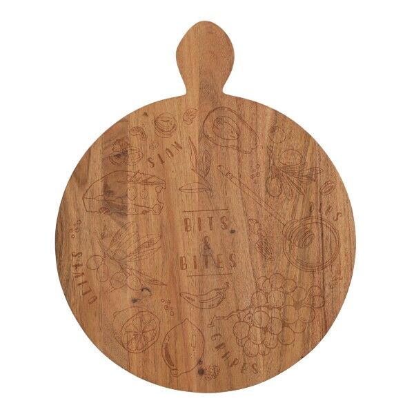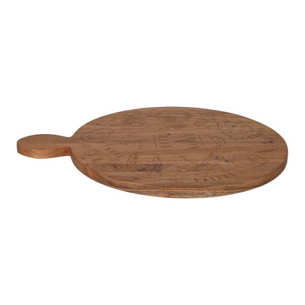 Deze ronde serveerplank is de perfecte basis voor een gezellige borrel. De plank is voorzien van graveringen van diverse etenswaren, zoals noten, worstjes en kaas, die inspiratie bieden voor het perfecte borrelmoment! De serveerplank is niet geschikt voor de vaatwasser. Voor langdurig behoud van kwaliteit is het aan te raden om de plank met een natte doek schoon te maken.