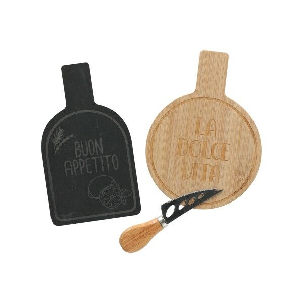 Deze vrolijke serveerset bestaat uit twee plankjes: een van leisteen en een van bamboe. Bij de set wordt ook een kaasmes geleverd zodat je moeiteloos kazen kunt snijden en serveren. Perfect voor een gezellige borrel of als cadeau voor kaasliefhebbers!