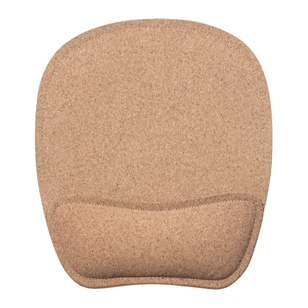 Muismat van natuurkurk met ergonomische polssteun en siliconen basis.