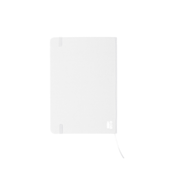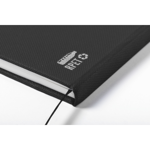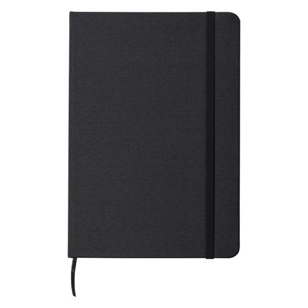 RPET polyester bekleed notitieboek met 80 gelinieerde vellen, boekenlegger en rubberen band. A5 formaat.