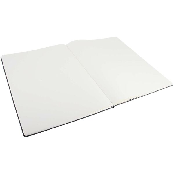 Het Moleskine A4 schetsboek is met karton gebonden met een afgeronde kaft en heeft zuurvrij hoogwaardig papier. Het notitieboek heeft een bladwijzer, een elastische sluiting en een uitbreidbaar binnenvak met daarin de geschiedenis van Moleskine.