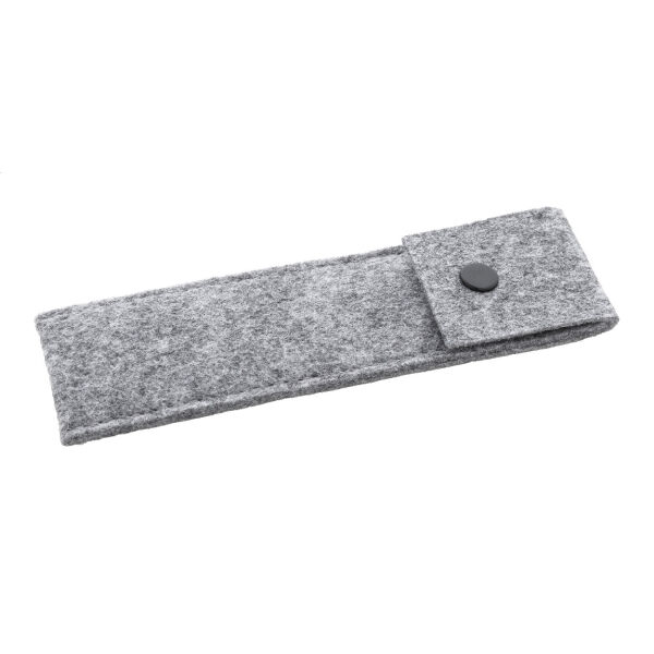 RPET vilten pennenkoffer met knoopsluiting, voor 2 pennen.