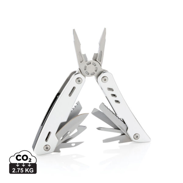 De Solid multitool is de perfecte combinatie van kracht en duurzaamheid. Met 12 essentiële functies ben je voorbereid op allerlei klussen, zowel thuis als onderweg. De multitool heeft een stevige aluminium behuizing en is uitgerust met roestvrijstalen gereedschap dat lang meegaat. Dit multifunctionele gereedschap bevat onder andere een naaldbektang, gewone tang, kniptang, mes, schroevendraaiers, zaag, blikopener en flesopener. Ideaal voor de doe-het-zelver of avonturier!