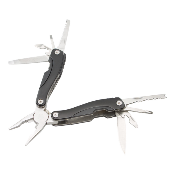 RVS Multi pincet met aluminium handvat. Met 8 functies, geleverd in een zwarte geschenkdoos.