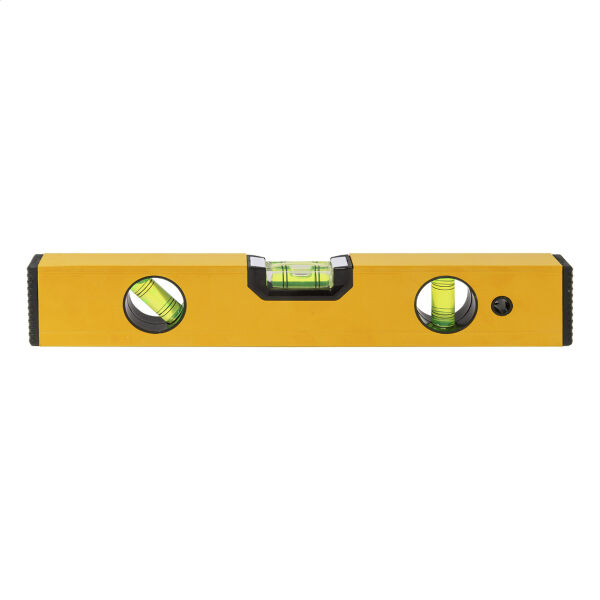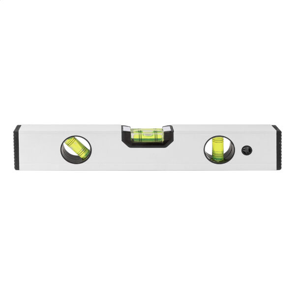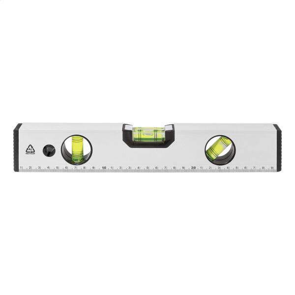 Magnetisch waterpas van gerecycled aluminium met drievoudige waterpas (horizontaal, verticaal en 45°) en liniaal van 30 cm.