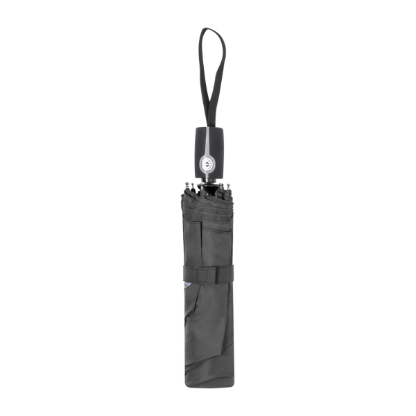 Volautomatische (open/dicht), winddichte opvouwbare paraplu met 8 panelen in bijpassende kleur etui. Met metalen frame, glasvezel baleinen en kunststof handvat. 190T RPET pongee. Met onderscheidend RPET-label.