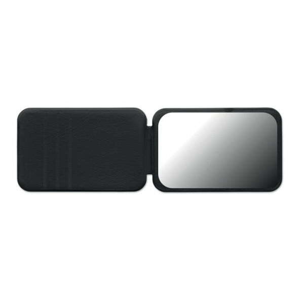 Compacte spiegel in opvouwbaar PU etui.