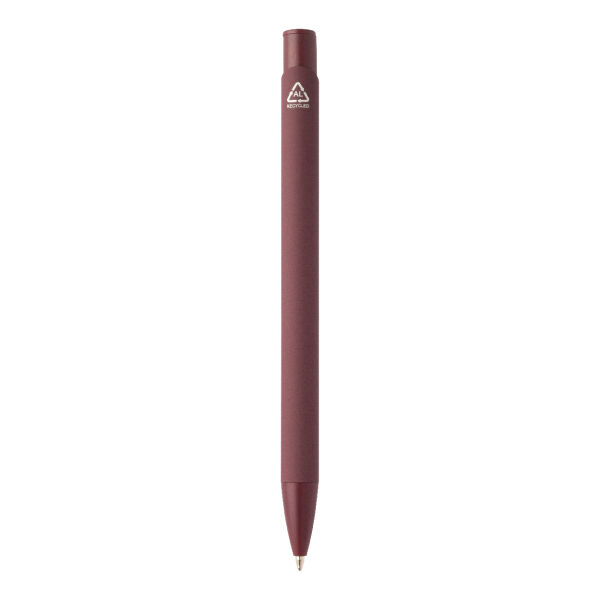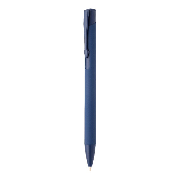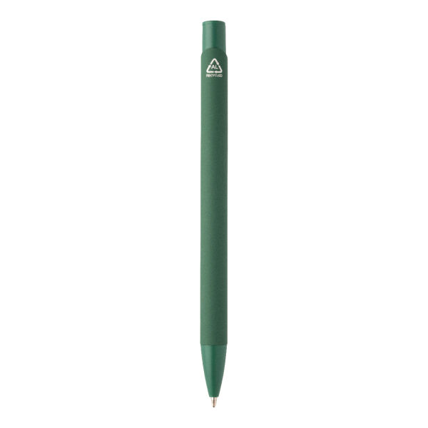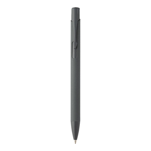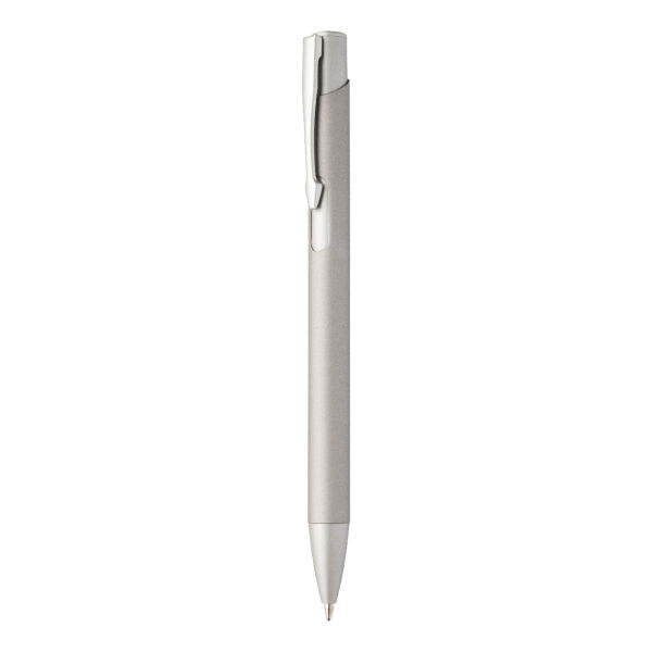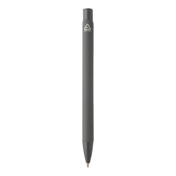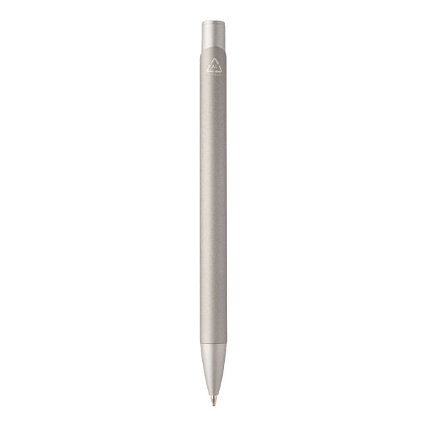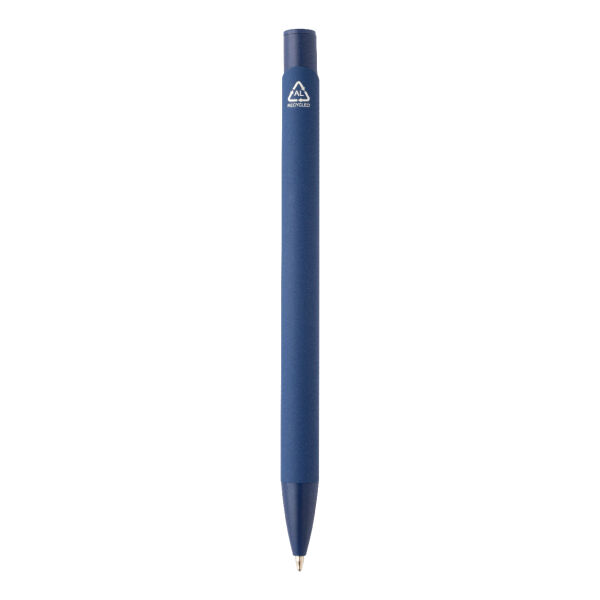 Gerecycleerde aluminium balpen met rubberen behuizing en bijpassende kleurdetails. Met blauwe navulling.