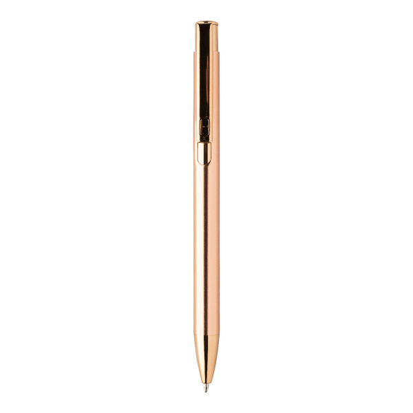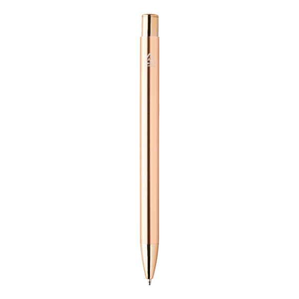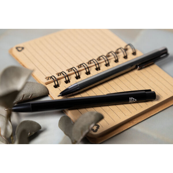Gerecycleerde aluminium balpen met glanzende metallic afwerking. Met blauwe navulling.