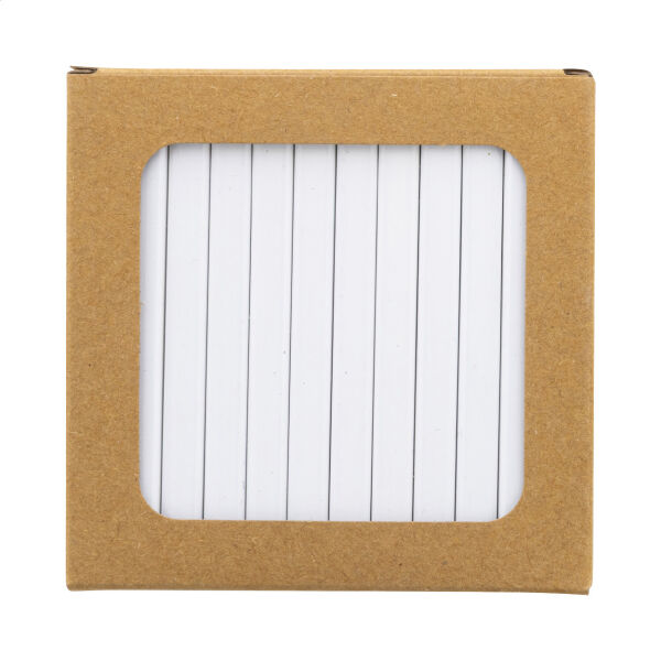 12 st rechthoekige houten gekleurde potlodenset met witte afwerking. In kraftpapier doos met groot venster. Ideaal voor alle UV LED-printen.
