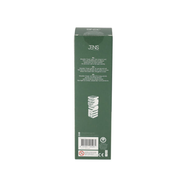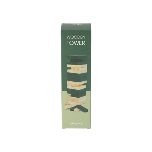 Spanning en sensatie met dit leuke torenspel. Verwijder om de beurt een houten blokje. Middels een dobbelsteen wordt er bepaald welke kleur blokje er verwijderd mag worden. Wie de toren laat vallen verliest het spel!