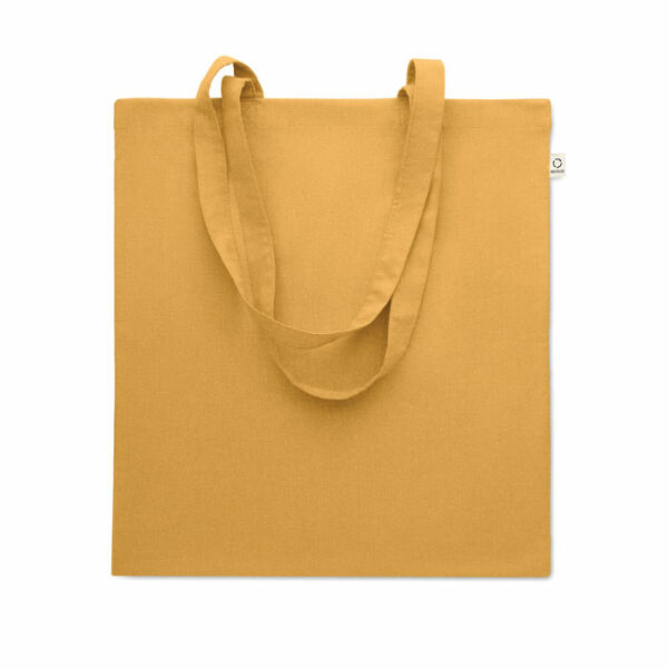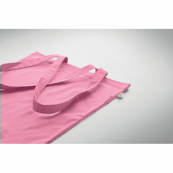 Gerecyclede pre-consumer katoenen boodschappentas (70% gerecycled katoen en 30% RPET) met lange hengsels. 140 gr/m². Dit artikel kan krimpen na het afdrukken.