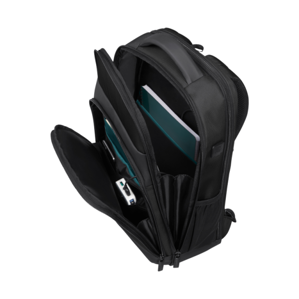 De Laptop Backpack 15.6'' is de middenmaat laptop rugzak uit de collectie. Het ruime hoofdcompartiment is geschikt voor A4 formaat documenten en is voorzien van een ritsvak om spullen gescheiden in op te bergen. Ideaal voor bijvoorbeeld je kabels of oplader. Aan de achterzijde is de tas uitgerust met een gewatteerd 15.6'' Laptop-en 10.5'' Tabletvak. Dankzij de geïntegreerde USB-poort kunnen apparaten onderweg worden opgeladen en met behulp van het slimme EasyPass systeem kunnen deze tijdens het opladen gewoon in de tas blijven zitten. Het ruime voorvak is voorzien van een compleet organisatiepaneel voor het opbergen van kleinere spullen en een apart vak voor je powerbank. Daarnaast beschikt de tas over een uitneembare etui voor bijvoorbeeld schrijfwaren of kabels. Optimaal comfort is gegarandeerd dankzij een gevoerd rugpaneel, ergonomische schouderbanden en een comfortabel handvat aan bovenzijde. Ook je drinkfles meenemen is geen enkel probleem dankzij de verborgen flessenhouder die te openen is met een rits. Met behulp van de Smart Sleeve aan de achterzijde is de rugzak gemakkelijk te bevestigen aan de trekstang van een koffer.