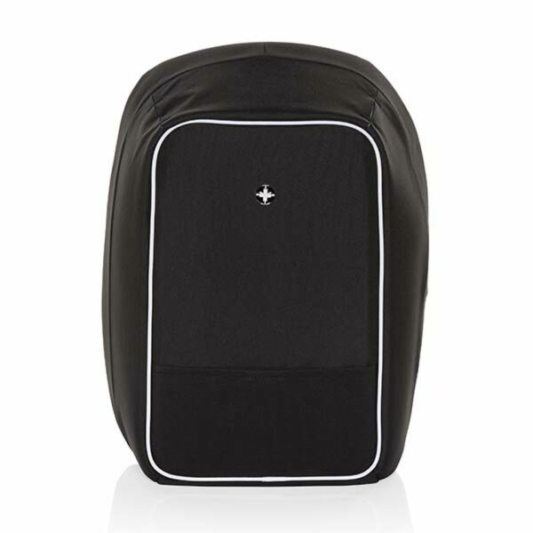 Deze Swiss Peak anti-diefstal 15,6-inch laptoprugzak is een stijlvolle optie voor je dagelijkse woon-werkverkeer. De verborgen ritssluitingen en geheime zakken die al je spullen veilig houden. Sluit je powerbank eenvoudig aan op de geïntegreerde USB-oplaadpoort en laad je telefoon of tablet onderweg op. Blijf 's nachts zichtbaar dankzij de reflecterende veiligheidsstrips. Met bagageband. Met AWARE™ tracer die het echte gebruik van gerecyclede materialen valideert. Elke tas heeft 24,4 0,5L PET-flessen hergebruikt. 2% van de opbrengst van elk verkocht AWARE™-product wordt gedoneerd aan Water.org. PVC-vrij. Geregistreerd ontwerp®
