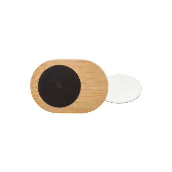 Bamboe, magnetische autohouder met ventilatierooster. Inclusief zelfklevend metalen plaatje. In doos van kraftpapier.