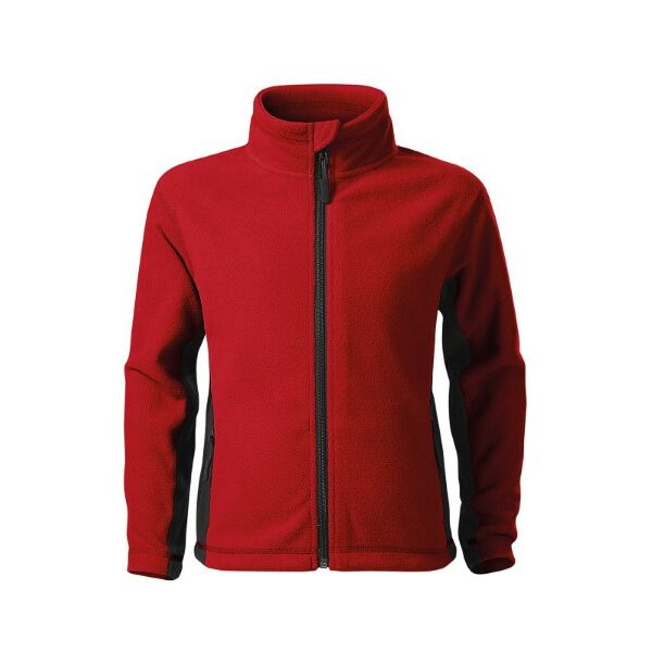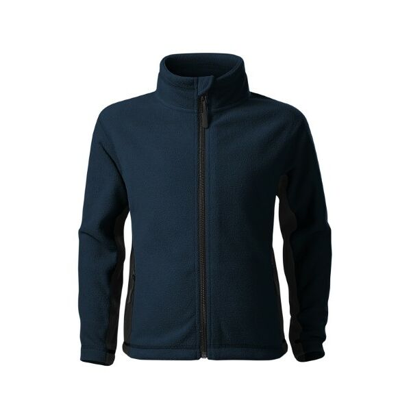 insulating fabric, inner neckline with a contrast tape, full-length coil zipper with chin protection, pockets with coil zipper, bottom hem adjustable by elastic drawstring, decorative stitching, antipilling finish on the outer side